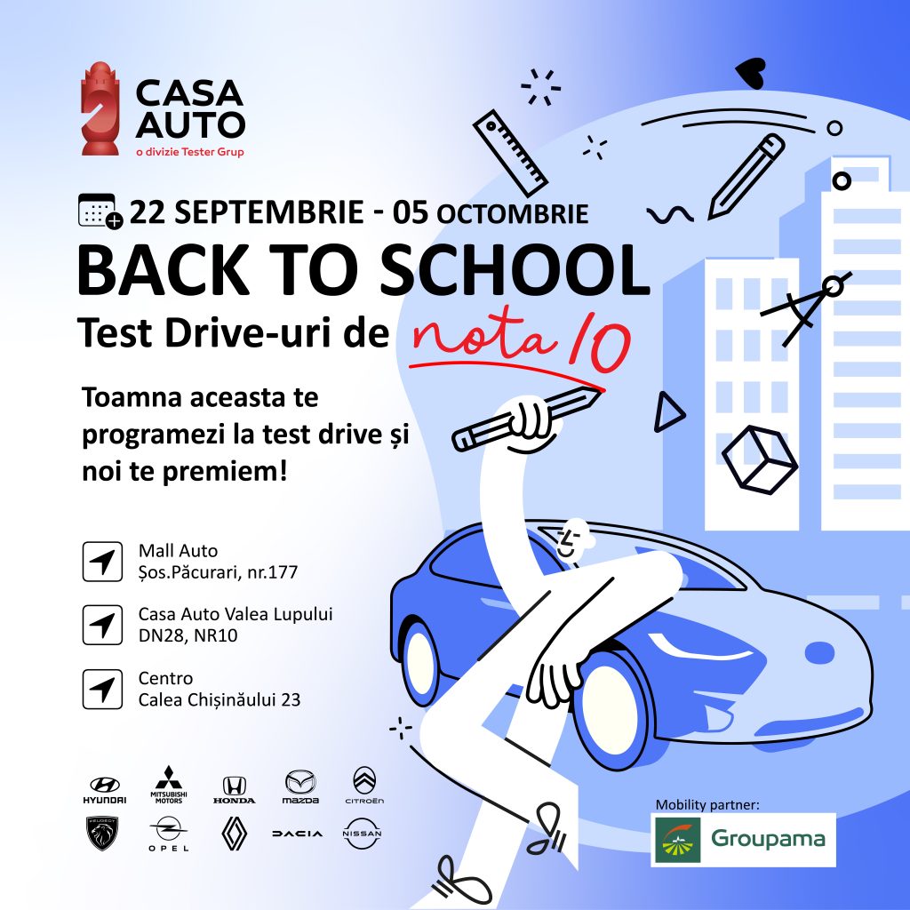 În perioada 24 septembrie – 4 octombrie 2025, Casa Auto Iași invită publicul larg să participe la cea de-a patra ediție a evenimentului „Back to School”, un program dedicat pasionaților de automobile și tehnologie, desfășurat simultan în toate locațiile dealerului.