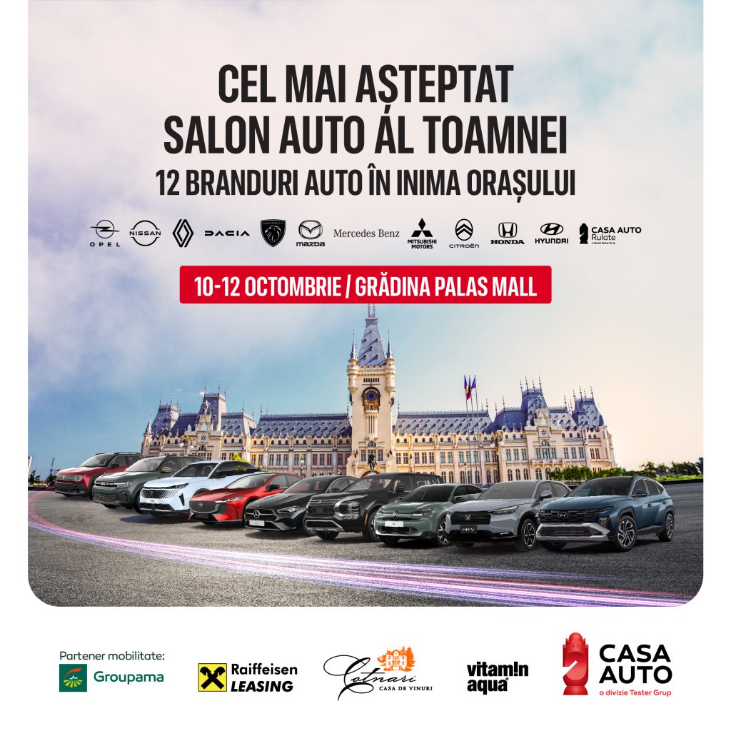Casa Auto Iași invită publicul la o nouă ediție a Salonului Auto Palas Mall, eveniment desfășurat între 10 și 12 octombrie, în inima complexului Palas Iași. Timp de trei zile, pasionații auto și vizitatorii sunt așteptați să descopere cele mai noi modele lansate de producători de top și să beneficieze de oferte exclusive disponibile doar pe durata evenimentului.